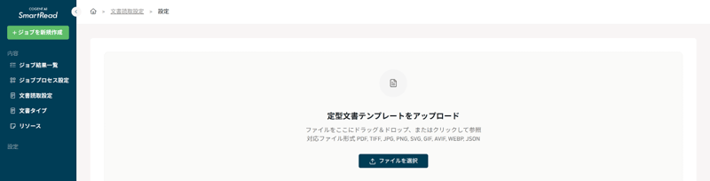 - [SmartRead Classic の機能改善] 定型文書で作成したテンプレートを JSON ファイルとしてインポートする機能を追加しました。文書タイプまたはテンプレートを作成する際に、テンプレートを JSON 形式で SmartRead にアップロードすることでテンプレートをインポートできます。本機能を使用することで、SmartRead Classic から SmartRead に定型テンプレートを移行できます。
