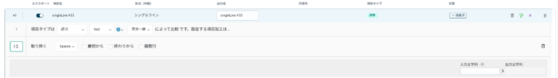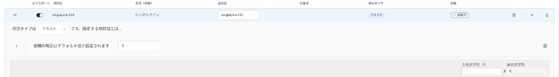 - [項目タイプ設定追加] の [無効な入力を設定する] を使用することで、入力が無効または空の場合の [カスタム値] を設定できます。例えば、入力が辞書の項目と一致しない場合には「NG」、空白の場合には「0」を出力できます。